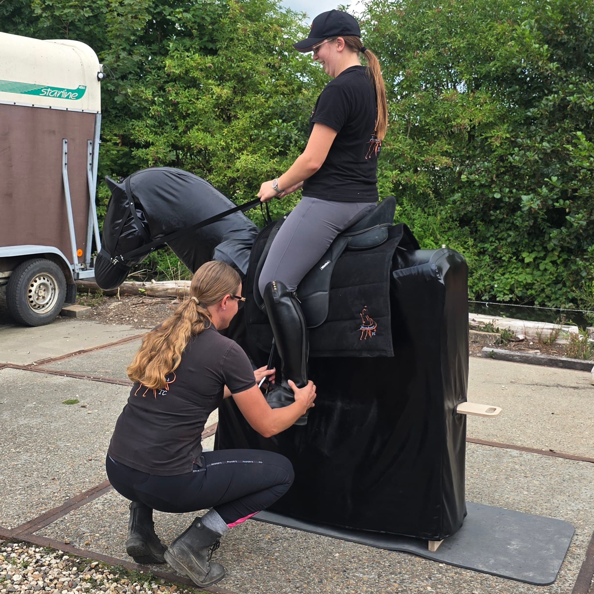 Onze Horsy is een 'Joker' van https://www.jokerthehorsesimulator.com. Een mechanisch paard dat werkt met veren, waarmee je vanuit de juiste inwerking van de ruiter alle oefeningen zonder echt paard kunt trainen! Wat mooi is aan een rijsimulator is dat je onbeperkt kunt oefenen zonder bezig te hoeven zijn met een echt paard. Horsy wordt namelijk niet moe en maakt ruiterfouten inzichtelijk zonder daar 'last' van te hebben. Alle mogelijkheden dus om echt even volledig op jezelf te focussen en je bewust te maken van je eigen inwerking.