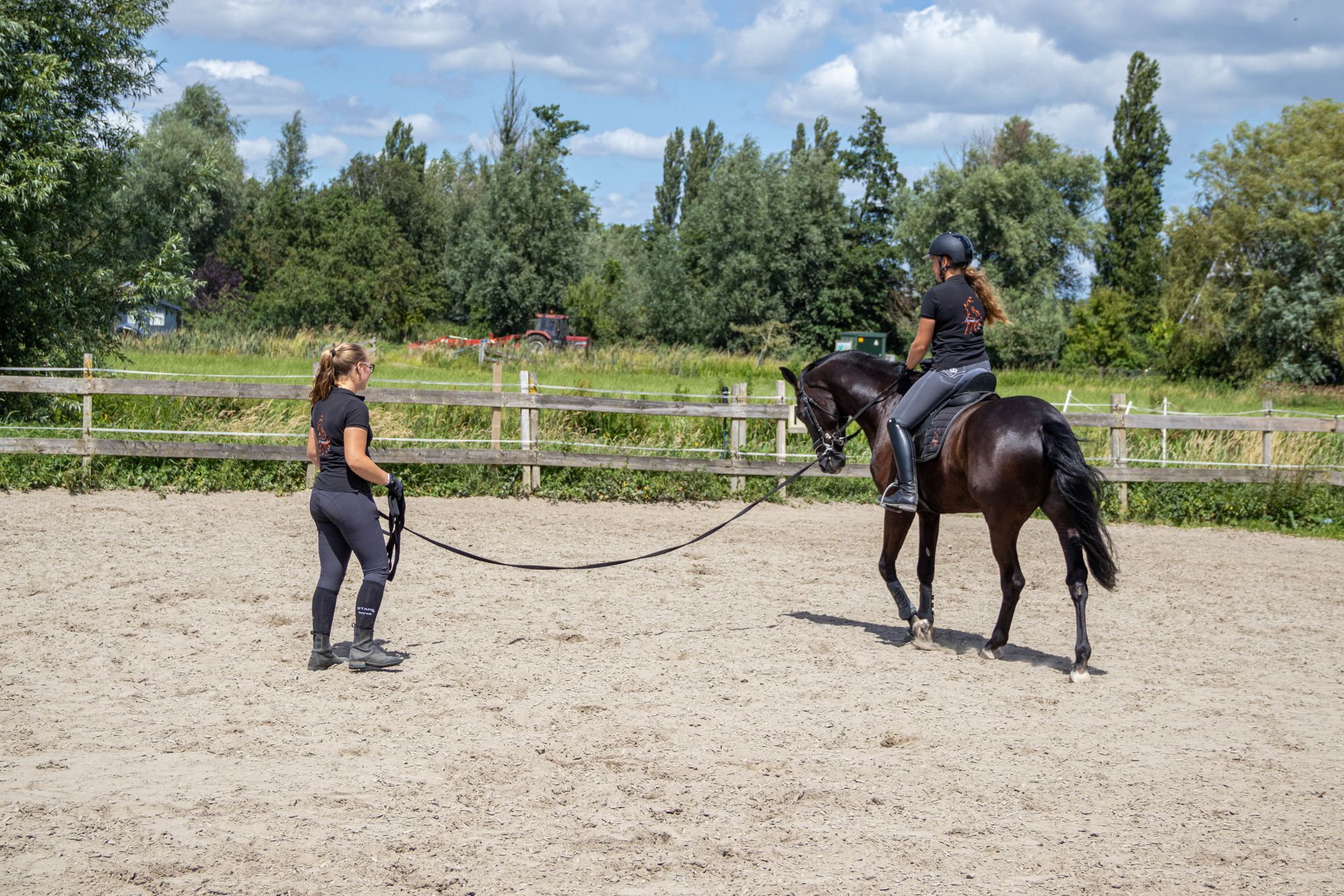 Paarden leren bij ons meer dan alleen een ruiter dragen op de rug. We beginnen met een goede longeerbasis waarin het paard leert onze 'taal' vanaf de grond te begrijpen. Ditzelfde moet gebeuren onder het zadel, daarbij zijn mentale trainingen van groot belang een paard moet correct leren omgaan met spanning en afleiding.